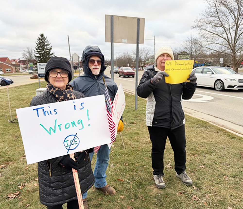 Join us at the intersection of Main Street and Old US12 every Friday from 4pm to 5pm. We demonstrate against the Fascist regime in Washington that is governing fraudulently under the Emergency Powers Act when there is no national emergency…except perhaps the emergency of trashing the U.S. constitution, attempts to corrupt the mid-term elections and denial of due process as outlined in the US Constitution. We collect food for local food banks at each demonstration, as do many Indivisible chapters around the country to help fill the gap after the Trump admin. curt way back on federal food bank supports.